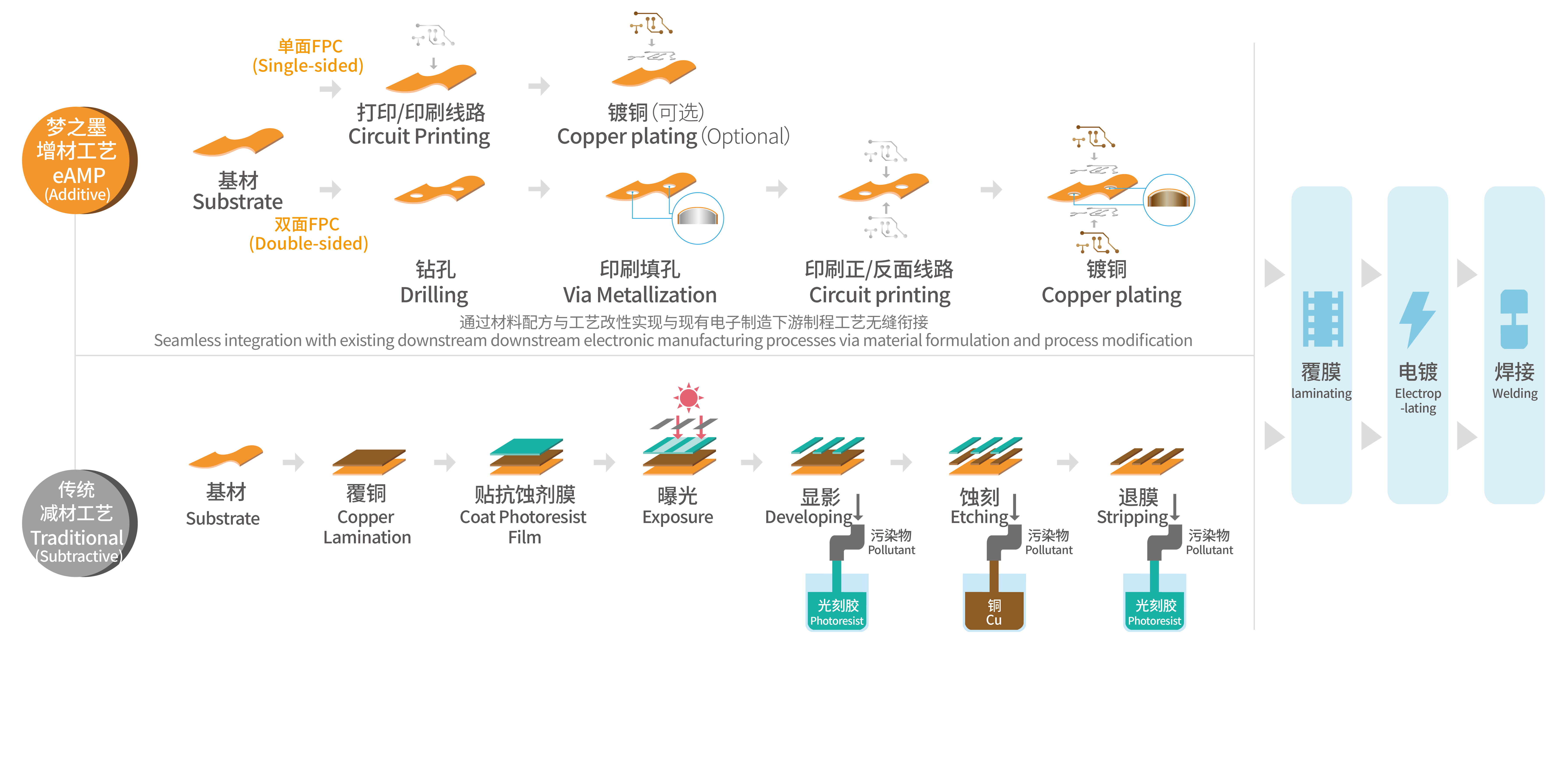 eAMP技術為行業發展帶來了前所未有的變革,有效滿足電子電路制造產業降本增效、低碳環保的需求,可推動傳統產業向高端化、綠色化轉型升級。
